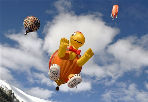第30屆瑞士黛堡國(guó)際熱氣球節(jié)1月19日-30日在中部阿爾卑斯山區(qū)腹地的黛堡小鎮(zhèn)絢麗開場(chǎng)。期間有來自18個(gè)國(guó)家的140多名選手?jǐn)y90多只造型各異的熱氣球參賽。