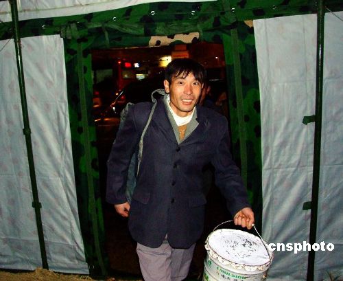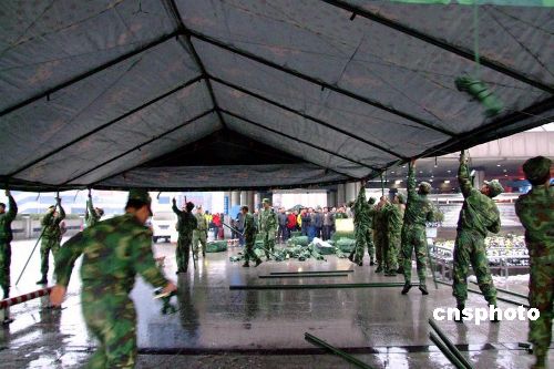 1月27日,南京軍區(qū)“硬骨頭六連”所在師接到杭州市政府請求支援電話,派出200余名工兵,火速趕往杭州火車站。官兵們寒著風(fēng)雪嚴(yán)寒,很快搭設(shè)好12頂野戰(zhàn)帳篷,并在帳篷里鋪設(shè)了草墊子,為滯留旅客提供休息之地。滯留在車站的民工旅客走進(jìn)野戰(zhàn)帳篷,臉上露出笑容,高興地說:今晚不會挨凍了,感謝黨和人民解放軍。據(jù)車站負(fù)責(zé)人介紹,因冰雪天氣影響,這天約有2萬名旅客滯留杭州火車站。中新社發(fā) 邱柏星 攝