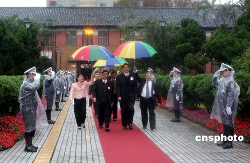 臺(tái)灣數(shù)十位腳登高筒皮靴的警官冒雨列隊(duì)在“立法院”內(nèi)紅地毯兩側(cè)迎接臺(tái)灣第七屆“立法委員”前來(lái)辦理報(bào)到并宣誓就職。
