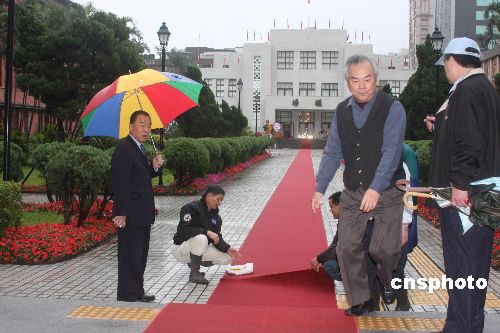 清晨,臺灣“立法院”的工作人員冒雨從大門口開始鋪設(shè)通到“議場”的、長達百米的紅地毯。