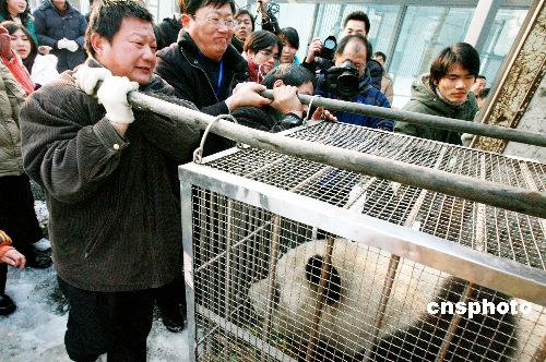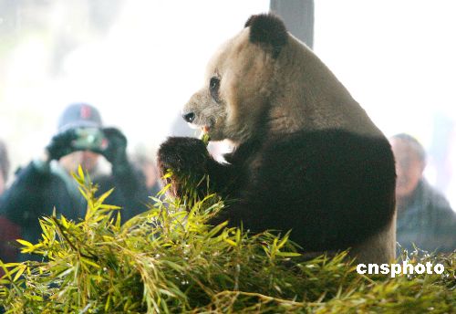 圖:大熊貓“蘇蘇”抵達蘇州與游客見面