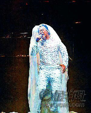 因票房告捷心情亢奮,陳奕迅開唱前還對所有工作人員大喊:“HaveFun!玩開心點(diǎn)!”接著,他頭披拖地的婚紗開場,上身居然穿的是蕾絲花邊的衣服,十分嫵媚,他連唱《低等動物》、《紅玫瑰》等4首招牌歌,引得全場粉絲尖叫、猛搖熒光棒,美中不足的是開唱前就飄起雨絲,粉絲在低溫中穿雨衣聆聽,頭發(fā)和臉都淋濕的他感謝粉絲冒雨捧場,感性地說:“謝謝大家陪我淋雨!