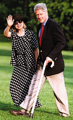 1997年,希拉里與克林頓出席一個(gè)公開(kāi)場(chǎng)合,將圖案情意結(jié)發(fā)揮得淋漓盡致,黑底白波點(diǎn)連外套長(zhǎng)裙將她幻化成一張“人肉包裝紙”,她硬撐著說(shuō):“那套衣服不是這么糟,只是較為令人眼花而已!
