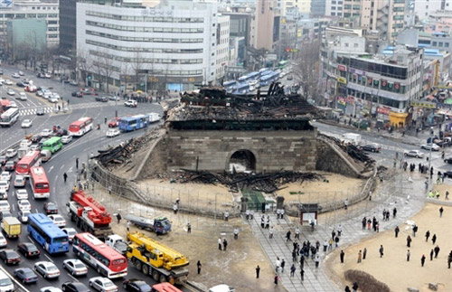 韓國第一號國寶“崇禮門”燒毀塌落損失慘重(圖)