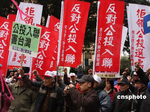 臺(tái)民眾"中選會(huì)"前表達(dá)反對(duì)"入聯(lián)公投"訴求