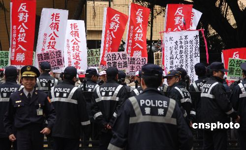 臺灣民眾"中選會"前表達(dá)反對"入聯(lián)公投"訴求 (2)
