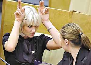 據(jù)報(bào)道,就在俄國家杜馬選舉前,普京曾向統(tǒng)一俄羅斯黨高層抱怨說,黨內(nèi)漂亮迷人的女性代表太少了,遠(yuǎn)遠(yuǎn)達(dá)不到吸引眾多投票者的程度。隨后,這一“錯(cuò)誤”很快就得到了“糾正”,5名艷光四射的美女被迅速補(bǔ)充進(jìn)來,當(dāng)中包括體操奧運(yùn)冠軍霍爾金娜、冬奧會(huì)冠軍朱洛娃、藝術(shù)體操奧運(yùn)冠軍卡巴耶娃在內(nèi)的3名前奧運(yùn)會(huì)冠軍,此外還有曾擔(dān)任過保鏢的女拳擊運(yùn)動(dòng)員娜塔麗婭和莫斯科大劇院首席芭蕾舞演員查卡諾娃。