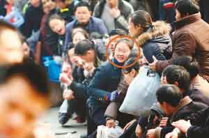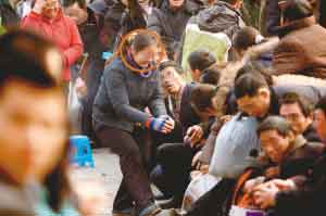 回到隊(duì)伍末端,瘦小男子只得重新排隊(duì)。他一臉無(wú)辜的自稱涪陵區(qū)人,名叫孫文件,在天津打工,從13日便開始候票。孫先生告訴記者,排在隊(duì)伍前面的一半左右的人都是票販子。他說(shuō),之所以這么肯定這些插隊(duì)的人是票販子,是因?yàn)樗J(rèn)得其中一個(gè),那個(gè)人13日下午向他兜售過(guò)到北京的硬坐車票,加價(jià)250元,他沒敢要。