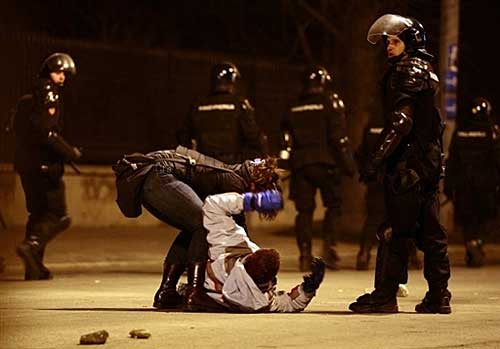 大約一千名憤怒的塞族青年,到美國大使館、一間美式快餐店和歐盟輪任主席國斯洛文尼亞大使館投擲石塊,并與防暴警察沖突,示威者又拆去歐盟旗幟,示威者又縱火、燒車,打爛大使館的玻璃窗。防暴警察以催激氣體及橡膠子彈驅(qū)散,又施放催淚氣體和出動(dòng)警棍驅(qū)散。