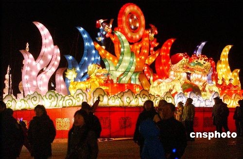 2008沈陽迎春燈會(huì)在沈陽世博園舉行,本屆燈會(huì)展出北京奧運(yùn)、鼠年吉祥、世界遺產(chǎn)、京劇臉譜、童話王國(guó)、沈陽地標(biāo)、傳統(tǒng)花燈、書法藝術(shù)八大主題系列,展線長(zhǎng)3400米,花燈數(shù)量超過3000盞,花燈品類達(dá)到80多個(gè),其中以“北京奧運(yùn)”為主題的組燈受到市民的“追捧”。中新社發(fā) 羅瀾 攝