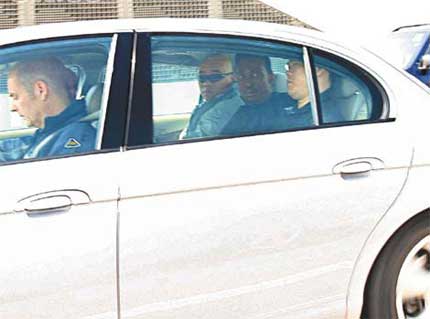 陳冠希獲安排由特別通道離開機場,在保鏢護送下驅(qū)車直往九展記者會會場。圖片來自香港東方日報。