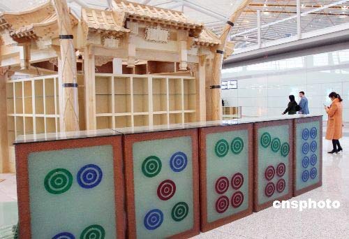 圖為3號(hào)航站樓內(nèi)新設(shè)的“麻將”景觀。