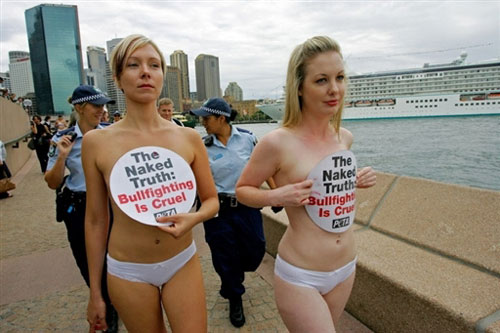 中新網(wǎng)2月28日電 綜合報道,“人道動物協(xié)會”(PETA)成員27日裸體出現(xiàn)在澳大利亞悉尼歌劇院前,抗議歐洲和西班牙舉行的斗牛比賽相當慘忍。