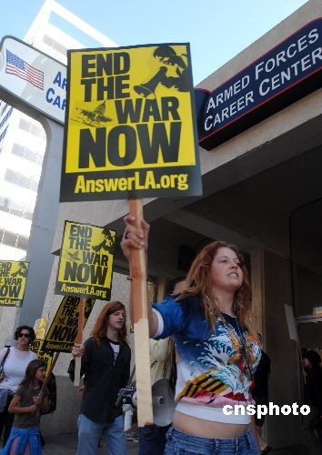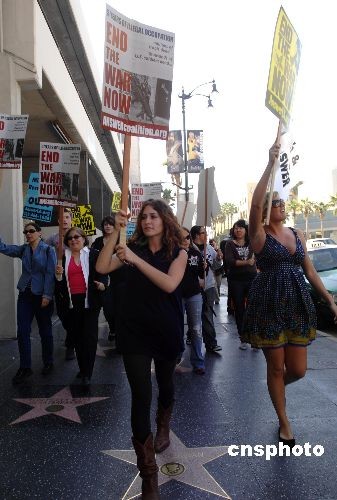 組圖:好萊塢“星光大道”上演反戰(zhàn)游行(5)