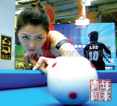 青年周末:最近大家愛拿你和潘曉婷作比較,一個(gè)是臺(tái)灣的九球美女,一個(gè)是內(nèi)地的九球天后。