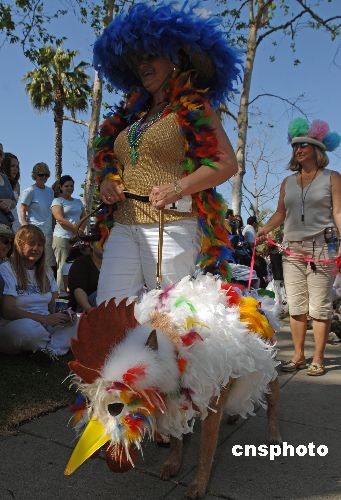 三月二十三日是西方復(fù)活節(jié),洛杉磯長灘舉行一年一度的“復(fù)活節(jié)愛犬時(shí)裝秀”,數(shù)百只寵物狗身著艷麗時(shí)裝參加時(shí)裝走秀。有的花枝招展,有的古靈精怪,有的雍容華貴,有的滑稽搞笑。中新社發(fā) 張煒 攝