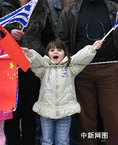 3月25日,北京2008年奧運(yùn)圣火希臘傳遞第二天,慶典儀式在終點(diǎn)約阿尼納舉行。小市民高舉中國和希臘國旗歡迎北京奧運(yùn)圣火到來。中新社記者 王歡