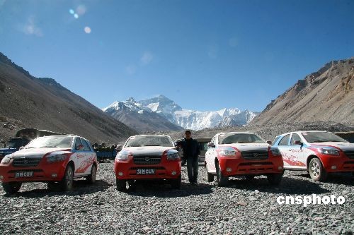 圖:中國登山隊(duì)圣火傳遞車隊(duì)抵珠峰大本營