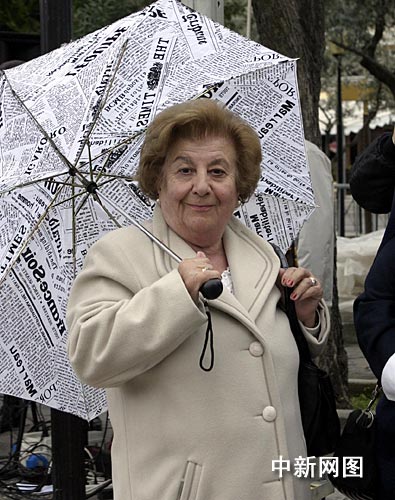 3月27日,北京奧運圣火希臘境內(nèi)傳遞第四天,打著漂亮雨傘的老婦人在韋里亞等待觀看火炬起跑儀式。 中新社記者 王歡