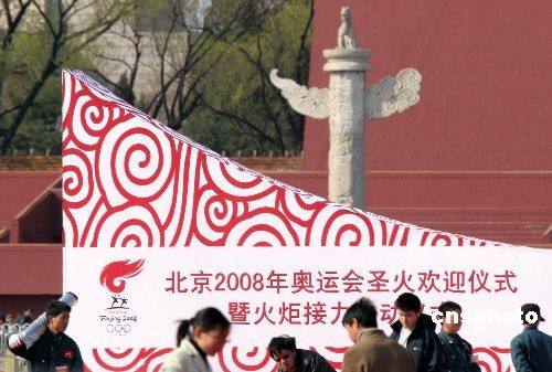 北京天安門廣場(chǎng)“緊鑼密鼓”迎圣火(2)