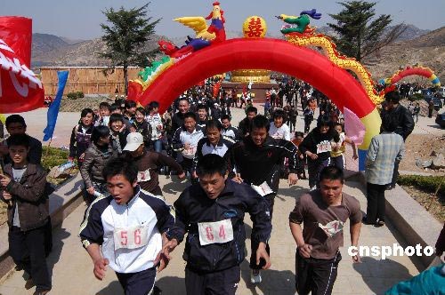 2008年4月2日,山東省日照市舉行全民健身與奧運(yùn)同行萬(wàn)人登山活動(dòng)暨馬鬐山風(fēng)景區(qū)啟用慶典,上萬(wàn)名群眾利用登山健身的方式,迎接2008年奧運(yùn)會(huì)。作者: 陳為峰