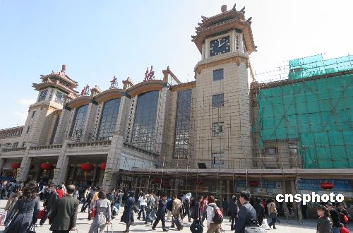 圖:北京站迎奧運(yùn)更換車站頂部琉璃瓦(2)
