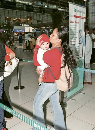 謝霆鋒本月2日跟電影《風(fēng)云II》到泰國拍攝,張柏芝翌日帶著8個月大的愛子Lucas與家姐抵曼谷尋夫。霆鋒跟大隊居住Emporium Suites,他為免影響工作故安排母子住四季酒店。隨著柏芝與Lucas的行蹤曝光,吸引更多香港傳媒追訪,他們亦因此變得低調(diào)。有報道指柏芝“失!睂し蛄铞h抗拒,加上他們住不同酒店、又不一起吃飯等也引起揣測。不過,昨日霆鋒在記者面前的愛妻表現(xiàn),以實際行動粉碎婚變傳言。