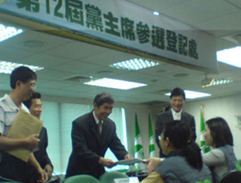 民進黨主席選舉登記今天開始,民進黨籍“立委”蔡同榮在今天下午率先完成登記。蔡同榮主張集體領(lǐng)導、增設(shè)副主席。他指出,民進黨內(nèi)青壯派口頭堅持“本土意識”,但某些場合卻又懷疑“本土意識”,不夠堅持 “臺獨”,這點與他有很大不同。