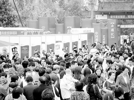 日前,記者在成都市浣花溪公園舉行的“迎接4·23世界讀書日”市民讀者大游園會(huì)上看到,活動(dòng)現(xiàn)場(chǎng)人頭攢動(dòng)、摩肩接踵!皻v屆諾貝爾文學(xué)獎(jiǎng)獲獎(jiǎng)作家作品展”、“圖書封面藝術(shù)設(shè)計(jì)展”、“電子圖書DIY和掌上閱讀體驗(yàn)”等一并與成都市民見面。
