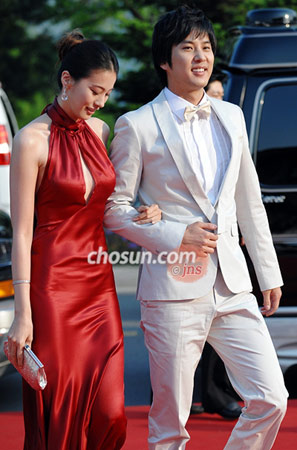 組圖:韓國(guó)百想藝術(shù)大獎(jiǎng)男女主角攜手入場(chǎng)(2)