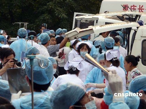 5月19日下午五點(diǎn)半多,四川汶川地震災(zāi)區(qū)的一批重傷員抵達(dá)重慶,重醫(yī)附一院的醫(yī)生護(hù)士象解放軍野戰(zhàn)醫(yī)院搶救傷員一樣投入搶救,猶如前方的戰(zhàn)場。