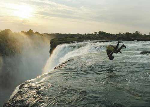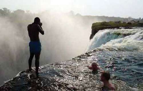 導(dǎo)游們從津巴布韋將那些膽量十足的游客護(hù)送上這個(gè)游泳池,一般每個(gè)人收取5美元的小費(fèi),而游客們一旦到達(dá)了這個(gè)“極限運(yùn)動(dòng)者天堂”,無一不被眼前的壯觀景象所折服。