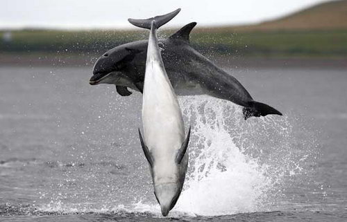旁觀者在看到瓶鼻海豚跳水嬉游的景象時(shí)經(jīng)常會(huì)誤認(rèn)為他們?cè)谟^看一場(chǎng)精心設(shè)計(jì)的演出,但對(duì)于那些在船上近距離觀看海豚的人們來(lái)說(shuō),海豚跳水嬉游的景象很自然,它們完全是率性而為。那些幸運(yùn)的游客可以看到三頭海豚在藍(lán)色的天空下跳水、海豚捕食鮭魚(yú)的跡象。一位乘船觀看海豚的游客稱(chēng):“這真是難以置信,我們與它們那么接近,這看起來(lái)好像是它們?cè)噲D想向我們展示它們的能力。它們動(dòng)作的協(xié)調(diào)性難以置信,你有時(shí)會(huì)認(rèn)為它們會(huì)撞到一起。觀看它們捕食鮭魚(yú)是一件更棒的事情。”