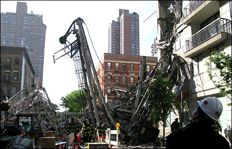 紐約摩天大樓建筑起重機(jī)跌落事故現(xiàn)場