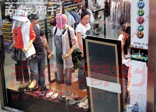 小宋佳在時裝店里挑衣服,猛男在一旁把關(guān)。