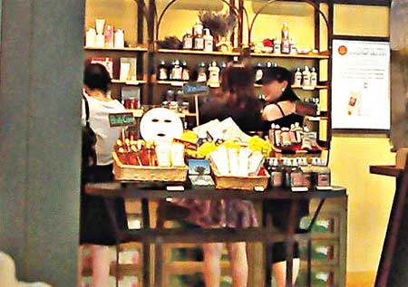 雖然鐘麗緹腹大便便,但依然十分照顧Yasmine,不時為她撥弄頭發(fā),可謂廿四孝媽咪。她們經(jīng)過電影院時,還專注地看電視播放的《功夫熊貓》預告片,十分入神。隨后,一行人又到L'occitane看香熏,不過左看右看,都揀不到合適產(chǎn)品,最后空手離去。
