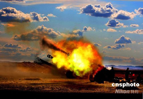 中國(guó)人民解放軍濟(jì)南軍區(qū)參加“礪兵--2008”演練的部隊(duì),日前已經(jīng)集結(jié)完畢,部隊(duì)全部進(jìn)入臨戰(zhàn)狀態(tài)。9月12日該軍區(qū)炮兵旅進(jìn)行臨戰(zhàn)前的實(shí)彈訓(xùn)練。中新社發(fā) 宋吉河 攝