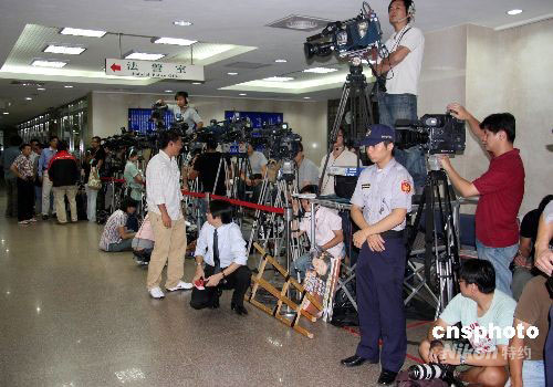 圖為一早就守候在臺北地方法院內(nèi)的大批媒體記者。中新社發(fā) 陳立宇 攝