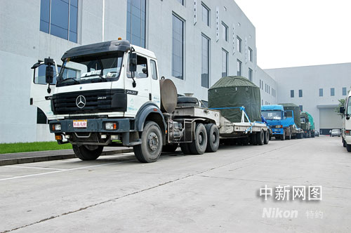 中國神舟七號載人航天飛船發(fā)射在即。圖為神舟七號飛船轉(zhuǎn)運(資料圖片)。袁明月 攝