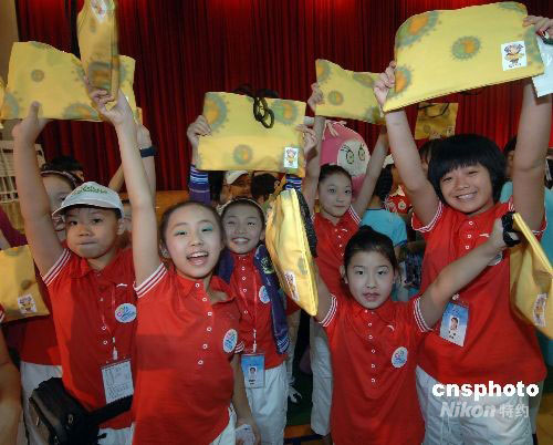 圖:臺北光復(fù)小學學生與福建小營員交換禮物