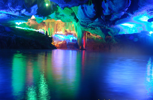 巖洞年輕、水質(zhì)純凈、水源豐富,是造就“中國最美地下河”的“溫床”。在這里不僅各類鐘乳石造型各異,品種應(yīng)有盡有;更難能可貴的是:地下河道隨巖洞走勢而延伸,周而復(fù)始、棄而不舍,形成一種人在岸邊走似在水中游浪漫情景;各種燈飾合理科學(xué)的組合,更讓一種神秘之光沿神農(nóng)河彌漫,讓你恍如步入“天上街市”;尤其是你坐上小船,泛舟神農(nóng)河,沿途瀏覽“仙女沐浴”“神農(nóng)揚(yáng)帆”“羅漢迎神”等景點時,你就更覺得是在蕩舟“九天銀河”了!