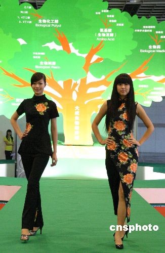 2008年10月16日,為期三天的第八屆中國國際糧油產(chǎn)品及設備技術展覽會在南京國展中心舉行。交易會期間舉行的用玉米蛋白纖維制成的精美時裝表演,給觀眾帶來視覺沖擊的同時也從新的角度展現(xiàn)了糧食深加工的魅力。中新社發(fā) 阿董 攝