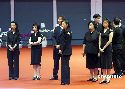 臺(tái)塑企業(yè)創(chuàng)辦人王永慶的遺體十七日由長(zhǎng)榮班機(jī)運(yùn)抵臺(tái)灣,靈堂設(shè)在桃園縣的長(zhǎng)庚大學(xué)活動(dòng)中心。圖為王永慶的親屬守候在靈堂內(nèi)。中新社發(fā) 耿軍 攝