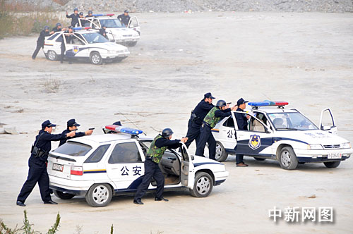 10月28日至11月2日,第三屆世界傳統(tǒng)武術(shù)節(jié)將在湖北十堰市舉辦。為及時、有效、妥善處置“武術(shù)節(jié)”期間可能發(fā)生的各類突發(fā)事故或恐怖襲擊事件,檢驗和提高十堰市整體處置突發(fā)事件的應(yīng)急能力。10月18日上午,十堰市 “武當(dāng)利劍”反恐實戰(zhàn)演練在十堰城區(qū)浙江路一平地上舉行。兩男子劫持一輛客車上的司機、女售票員及車內(nèi)乘客共10人沖卡向浙江路方向駛?cè),?zhí)勤交警立即向市公安局110指揮中心報告。