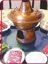 。犚紬l龍經(jīng)營涮羊肉已有220年的歷史,因其一直延續(xù)傳統(tǒng)的銅火鍋吃法,堪稱京城涮羊肉“正宗”,特點有四:一是選肉精,這里的內(nèi)蒙古專供灘羊,粉肉白腰,香而不膻,肉質(zhì)鮮美。二是加工細,選切羊肉時,要先在一層錫箔上放好天然冰,再把羊腿放在冰上碼好,肉上蓋油布,油布上在壓冰,這樣經(jīng)過一天一夜的“壓肉”、“排酸”,切出來的肉片薄,自然打卷,形似刨花,又不失嫩香。肉切好后按黃瓜條、上腦、磨襠、小三叉、大三叉等不同部位裝盤,顧客可根據(jù)喜好選擇。三是作料全,除了辣椒油和醋之外,還有高級醬油、醬豆腐、小磨香油、糖蒜、米酒、酸菜等等。四是主食香,5公斤面要放1公斤芝麻,做出的燒餅多達18層,烙完后再上爐烘烤,外焦里嫩,香酥適口,加上一碗又細又勻的綠豆雜面,收盡油膩,那才叫實實在在的吃涮羊肉。壹條龍清真涮肉炭火鍋被評為“北京名火鍋”。