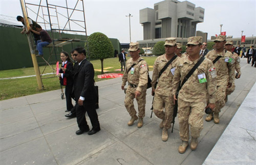11月22日至23日,亞太經(jīng)合組織領(lǐng)導(dǎo)人非正式會(huì)議將在秘魯首都利馬召開(kāi)。為了各國(guó)領(lǐng)導(dǎo)人的安全,秘魯警方采取了多項(xiàng)預(yù)防措施,將安排3.9萬(wàn)名警察在大街上巡邏,并用直升機(jī)將護(hù)送領(lǐng)導(dǎo)人衛(wèi)隊(duì),而領(lǐng)導(dǎo)人們則將在戒備森嚴(yán)的秘魯國(guó)防部?jī)?nèi)會(huì)面。