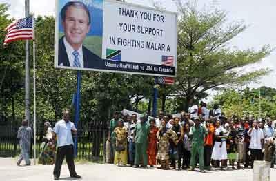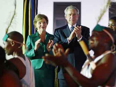 坦桑尼亞是布什這次非洲5國(guó)之行的第二站。路透社駐當(dāng)?shù)赜浾甙屠?#183;穆迪說(shuō),盡管布什在美國(guó)國(guó)內(nèi)支持率低迷,但在這個(gè)東非國(guó)家享受到了久違的贊美。