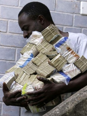 物價飛漲貨幣貶值 津巴布韋男子抱現(xiàn)金購物(圖)