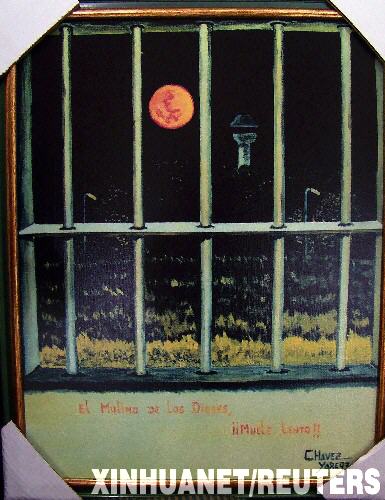 查韋斯是委內(nèi)瑞拉聯(lián)合社會(huì)黨的創(chuàng)始人。他1993年被關(guān)押在米蘭達(dá)州的亞雷監(jiān)獄時(shí)畫了這幅《亞雷的月亮》。查韋斯是因?yàn)轭I(lǐng)導(dǎo)1992年2月4日反對(duì)時(shí)任總統(tǒng)佩雷斯的政變失敗而被關(guān)押的,他作畫時(shí)已在監(jiān)獄里呆了近兩年。今年5月,查韋斯把這幅畫捐給了委內(nèi)瑞拉聯(lián)合社會(huì)黨,用于為11月的地方選舉籌款。