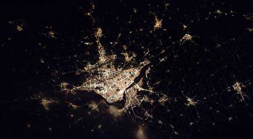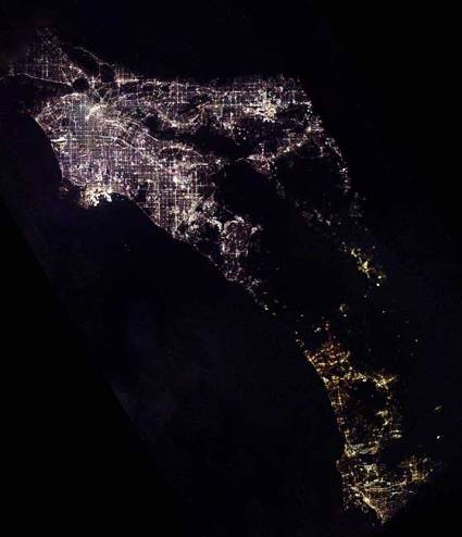 美國(guó)南加州的夜景。其中高科技產(chǎn)業(yè)地區(qū)燈光十分明亮。